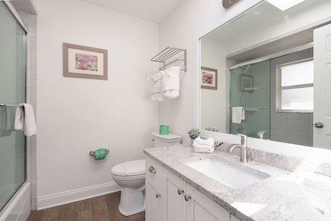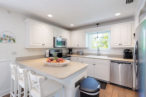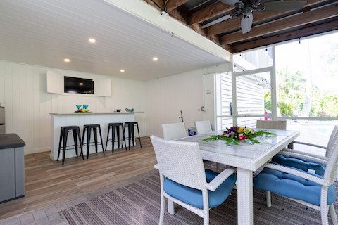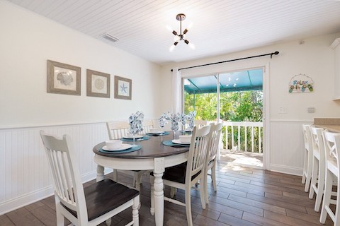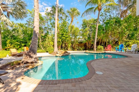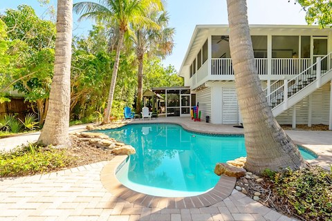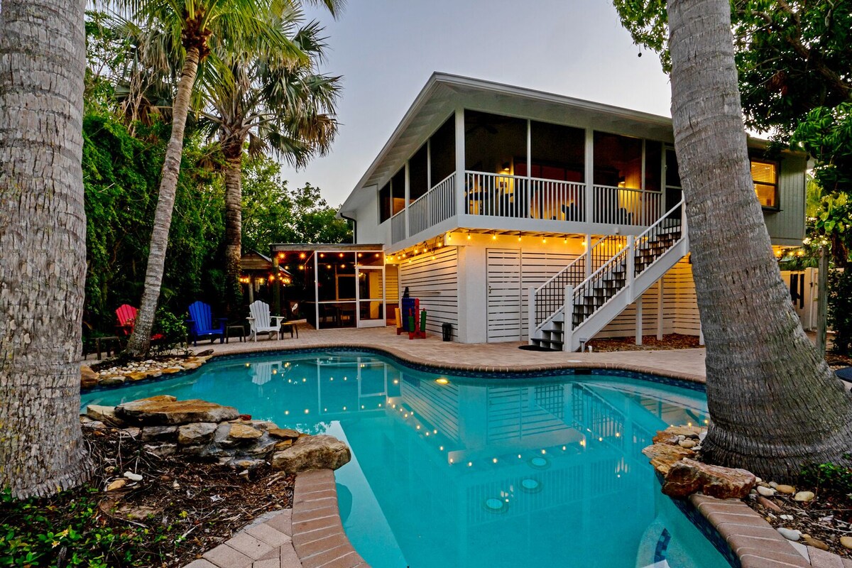 The Beach Escape is a vacationer's dream. A charming, authentic, beautiful cottage nestled in the desirable North End of Anna Maria Island. A home filled with the nostalgic Florida beach atmosphere, yet infused with modern finishes. Gorgeously landscaped to perfection, large and private backyard, with a custom and heated salt water pool surrounded by coconut trees, the Beach Escape offers complete tranquility and relaxation in a secluded tropical slice of paradise. With lots of space for pool side lounging, a large paver area, an outdoor bar, lounge chairs and hammock, outdoor and indoor speakers, smart TVs, Xbox consoles, and more, it is simply the perfect getaway.