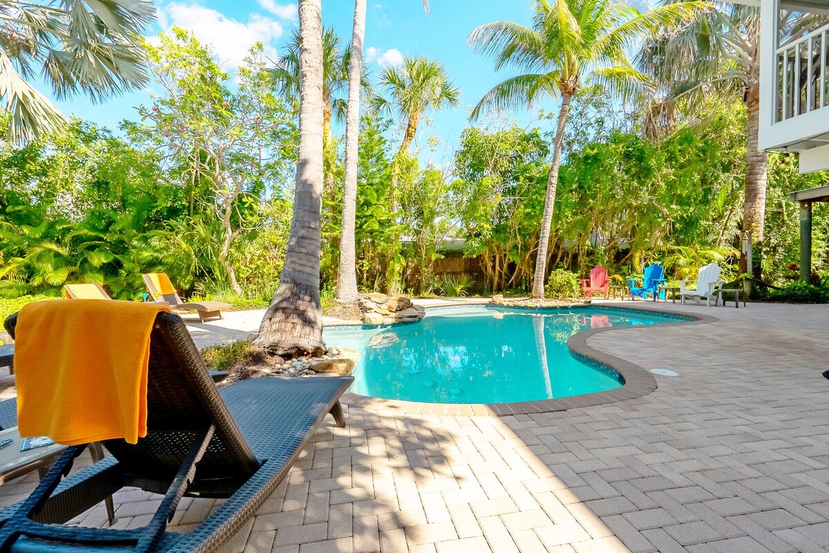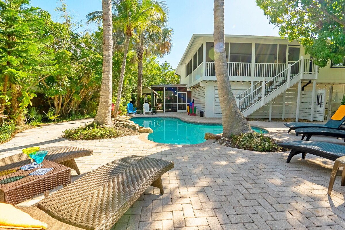 The Beach Escape is a vacationer's dream. A charming, authentic, beautiful cottage nestled in the desirable North End of Anna Maria Island. A home filled with the nostalgic Florida beach atmosphere, yet infused with modern finishes. Gorgeously landscaped to perfection, large and private backyard, with a custom and heated salt water pool surrounded by coconut trees, the Beach Escape offers complete tranquility and relaxation in a secluded tropical slice of paradise. With lots of space for pool side lounging, a large paver area, an outdoor bar, lounge chairs and hammock, outdoor and indoor speakers, smart TVs, Xbox consoles, and more, it is simply the perfect getaway.
